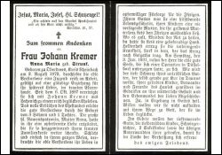 ∞ 6.10.1897 Johann Kremer aus Lechenich; 4 K.; starb nach Operation in Düsseldorf |