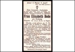 ∞ Josef Bode zu Engers; Angehörige in Weiden b. Köln, Kärlich b. Koblenz, Köln-Nippes u. Berlin |