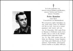 Opfer 2. Weltkrieg: starb an Folgen der Kriegsgefangenschaft; Eltern: Cornel Kanzler u. Anna geb. Hallmann; 1939 Abitur; Theologiestudium; seit Ende 1940 Heeresdienst (Sanitäter) |