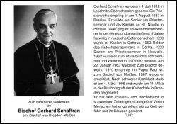 Priesterweihe 1.8.1937 in Breslau; Kaplan in Breslau; 1940 Wehrmachtspfarrer; 5 J. russ. Gefangenschaft; 1950 Kaplan in Cottbus; 1952 Rektor des Katechetenseminars in Görlitz; 1963 Bischofsweihe; 1970 Ernennung zum Bischof von Meißen; 1987 emeritiert; beigesetzt in der Bischofsgruft der Kathedrale in Dresden |