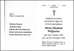 Wolfgarten, Maria Elisabeth