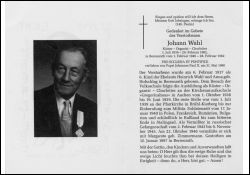 Eltern: Heinrich Wahl u. Anna geb. Hofschlag; Küster-Organist-Chorleiter ab 1.7.1939 in Brühl-Kierberg, ab 1940 Soldat 2. Weltkrieg, Stalingrad, russische Gefangenschaft bis 9.11.1945; ∞ 22.10.1946 Margarete Zimmermann; Kinder; 1.2.1946 - 28.2.1982 Küster-Organist-Chorleiter in Berrenrath; Orden Pro ecclesia et pontifice |