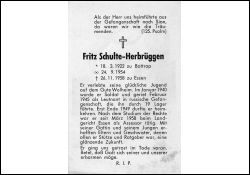 Jugend auf Gut Welheim; Jan. 1040 Soldat, Febr. 1945 russ. Gefangenschaft in 19 Lagern; Ende 1949 Heimkehr; Jurastudium; seit März 1958 Assessor beim Landgericht Essen |