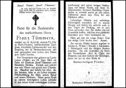 Eltern: Josef Tümmers u. Henriette geb. Grefen |