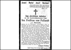 ∞ 27.11.1900 Reinhard Freiherr von Pallandt aus Bleialf; 1 Tochter; seit längerem schweres Leiden |