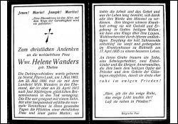 ∞ 22.5.1895 Landwirt Wilhelm Wanders, † 23.4.1915; 1 Sohn; längere, schwere Krankheit |