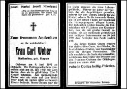∞ 26.7.1912 Carl (Karl) Weber; 3 K.; durch tückisches Leiden 1 1/2 Krankenbett |