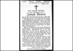 ∞ 21.11.1888 Gertrud Schumacher; 9 K., daon 1 früh †; 2 Söhne im 1. Weltkrieg gefallen; lange Jahre Mitgl. Mitgl. in Kirchenvorstand u. Gemeinderat; Druck in Osterath |