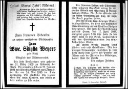 ∞ 27.1.1894 Matthias Weyers aus Osterath, † 24.5.1935; 9 K., davon 3 †; ländere schwere Leiden und Schmerzen; Druck in Osterath |