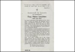 Eltern: Johann Mobis u. Katharina geb. Korbmacher; ∞ 2.9.1920 Heinz Leuchten; 3 K.; langes, schweres Leiden |