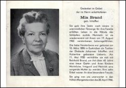 Eltern: Johannes Inhoffen u. Hubertine geb. Liebertz; ∞ 11.5.1920 Reinhold Brand, † 19.8.1965; Kinder: Marieluise, Irmgard u. Heinrich |