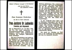 Eltern: Gutsbesitzer Franz Biegenwald u. Anna geb. Sporrenberg; ∞ 5.5.1903 Dr. jur. Josef Lodowicks; 2 K.; schweres Leiden, mehrere Operationen |