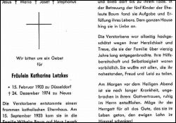 Fräulein; am 15.9.1933 kam sie in die Familie Wilhelm Baum auf Haus Leusch und blieb dort bis zu ihrem Tode; Betreuung der 5 Kinder der Ehel. Baum |