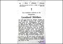 Gefallener 2. Weltkrieg; Eltern: Wilhelm Melchers u. Maria geb. Küppenbender; ∞ 2.5.1936 Wilhelmine Esser aus Myhl; 1 Sohn |