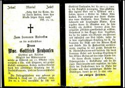 ∞ 30.9.1874 Gottfried Neuhausen, † 6.11.1904; 5 K., davon 3 früh †; die letzten 4 Monate bettlägrig; Mitgl. Mütterverein |