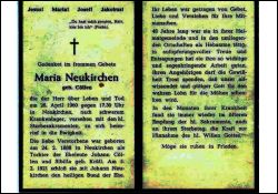 Eltern: Johann Cöllen u. Sibilla geb. Krüll; ∞ 5.2.1921 Johann Neukirchen; 49 J. Hebamme |