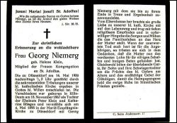 Eltern: Peter Klein u. Katharine Rösgen; ∞ in Düsseldorf Georg Niemerg; 1 überlebender Sohn |