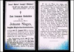 ∞ 17.5.1890 Elisabeth Replater; 6 K., davon 2 früh †; langjähriges Mitgl. d. Gemeinderates (vermutlich: Osterath); weilte in Aachen zur Erholung |