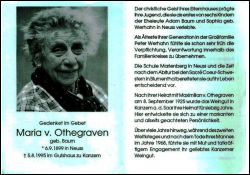 Eltern: Adam Baum u. Sophia geb. Werhahn in Neuss (Großfamilie Peter Werhahn); Schule Marienberg in Neuss, Abitur; ∞ 8.9.1925 Maximilian v. Othegraven, † 1968; Weingut in Kanzern a.d. Saar ihre neue Heimat; führte das Weingut nach Tod ihres Mannes |