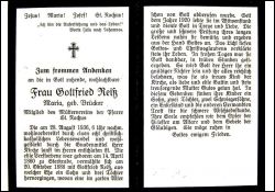 Mitgl. Mütterverein St. Rochus; ∞ 20.10.1888 Gottfried Reiß, † 1920; 4 K., davon 1 früh †; |