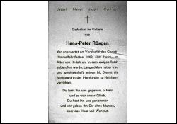 13 J., am Vorabend des Christi-Himmelfahrt-Festes gestorben; Ministrant |
