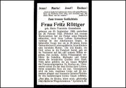 ∞ vor 28 J. Fritz Röttger; 3 K., alle †; Mitgl. Frauenkongregation St. Rochus (Düsseldorf) |
