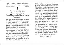 ∞ 14.1.1914 zu Pulheim Peter Pesch, † 7.2.1956; 5 K.; Sohn Heinrich † 1946 mit 31 J. |