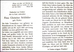 ∞ 23.4.1927 Georg Schlöder, † 3.7.1953; 3 K.; nach schwerer Operation verstorben |