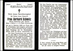 ∞ 1919 Gerhard Schmitz; 4 K., davon 1 1920 †; Mitgl. Mütterverein u. St. Matth.-Bruderschaft |