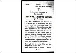 ∞ 25.2.1933 Christian Schmitz, † 22.11.1944 im 2. Weltkrieg gefallen; 3 K. |