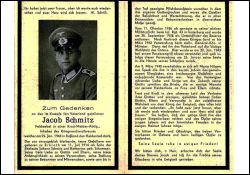 Gefallener 2. Weltkrieg; Eltern: Johann Schmitz u. Katharina geb. Schommer; am 22.1.1943 schwer verwundet; ∞ 9.3.1940 Maria Hilgers aus Speck; |