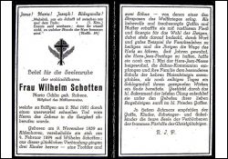 Mitgl. Mütterverein; ∞ 4.2.1894 Wilhelm Schotten; 3 K., davon 1 Sohn an Sprapazen des 1. Weltkrieges gestorben; |