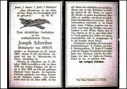 Mitkämpfer von 1870/71; ∞ 1878 Juliane Rüdiger, Goldhochzeit 5.5.1928, † 15.3.1929; 9 K., davon 2 †; Lebensabend b. einer Tochter |