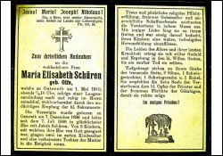 ∞ 7.7.1866 Jakob Schüren; 5 K., davon 2 früh †; 1 verh. Tochter † als Mutter |