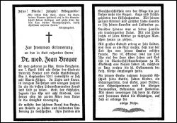 Dr. med: Eltern: Heinrich breuer u. Sofie geb. Spickernagel; ∞ 5.9.1911 Maria Fischer; 8 K., davon 1 früh †; er wußte als Arzt um sein unheilbares, qualvolles Leiden |