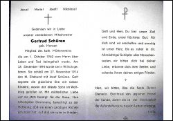 ∞ 27.11.1914 Josef Schüren; 7 K.; ältester Sohn im 2. Weltkrieg gefallen; |