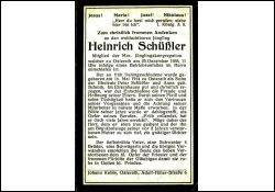 mitgl. Marian. Jünglingskongregation; Eltern: Peter Schüßler u. Anna geb. Schmitz, vor 2 J. † ; |