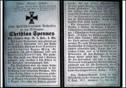 Gefallener 1. Weltkrieg; Eltern: Karl Spennes u. Catharina Agnes geb. Wirtz; ∞ 1.2.1907 Catharina Nobisrath; 7 K., davon 3 †; 2.8.1914 Einberufung; im Mai 1917 infolge der Sprapazen einsetzendes Siechtum |