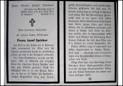 Eltern: Franz Spicker u. Ida geb. Müller; 12 J. als kaufm. Angestellter b. Fa. Stein; Mitgl. Freiwillige Feuerwehr; seit früher Kindheit von 2 1/2 Jahren herzleidend |