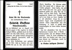 Schneidermeister; schweres Leiden; ∞ 25.10.1892 Anna Maria Quadflieg, † 19.3.1934; 4 K. |