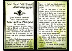 Mitgl. Mütterverein; ∞ Juni 1899 Hermann Steinfels aus Osterath, † 24.8.1918; 14 K., davon 2 †; hartnäckige Krankheit |
