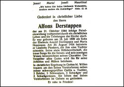 Opfer 2. Weltkrieg; Tod durch Feindeinwirkung; Eltern: Arnold Derstappen u. Maria geb. Hesemann; ∞ 30.8.1924 Liselotte Plenkers; 1 Tochter; |