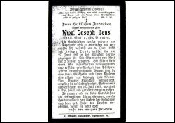 ∞ in Huckingen Joseph Deus, † 27.6.1905; 2 K.; längere Krankheit; Druck in Düsseldorf |