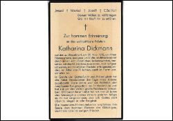 Fräulein; 71 J.; langes Leiden; viele Jahre Präfektin der Jungfrauen-Kongregation an St. Maximilian |
