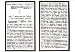Jungmann; Eltern: Wilhelm Faßbender, † 1930, u. Elisabeth geb. Schap; 1 K.; viele Jahre arbeitslos; vor einigen Monaten wieder Aufnahme seines Berufs; Tod durch Berufsunfall |