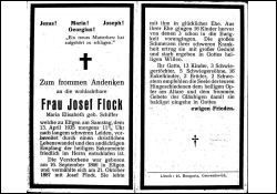 ∞ 21.10.1887 Josef Flock; 16 K., davon 3 †; sehr schmerzhafte schwere Krankheit |