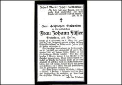 ∞ 12.11.1895 Johann Füsser, Küster an St. Suitbertus; 7 K., davon 3 †; Unterleibsleiden |