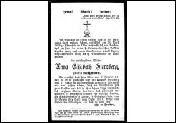 87 J.; Wohnort Bedburdyck; war zu Besuch auf Kinderkommunion einer Enkelin in Ehrenfeld; 38 J. Ehe mit Wilhelm Giersberg, seit 17 J. Witwe; 8 überlebende Kinder |