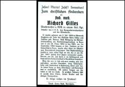 Gefallener 2. Weltkrieg; Eltern: Hans Gilles u. Josefine geb. Daners; Abitur Beethovengymn. Bonn; Medizinstudent; eingezogen Oktober 1940; 29.7.1943 schwer verwundet; Heldenfriedhof Karatschew; Druck in Bornheim |