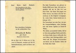 Mitgl. Mütterverein; ∞ 30.5.1911 Peter Buhs, † 10.2.1951; 4 Söhne, davon 2 †; |